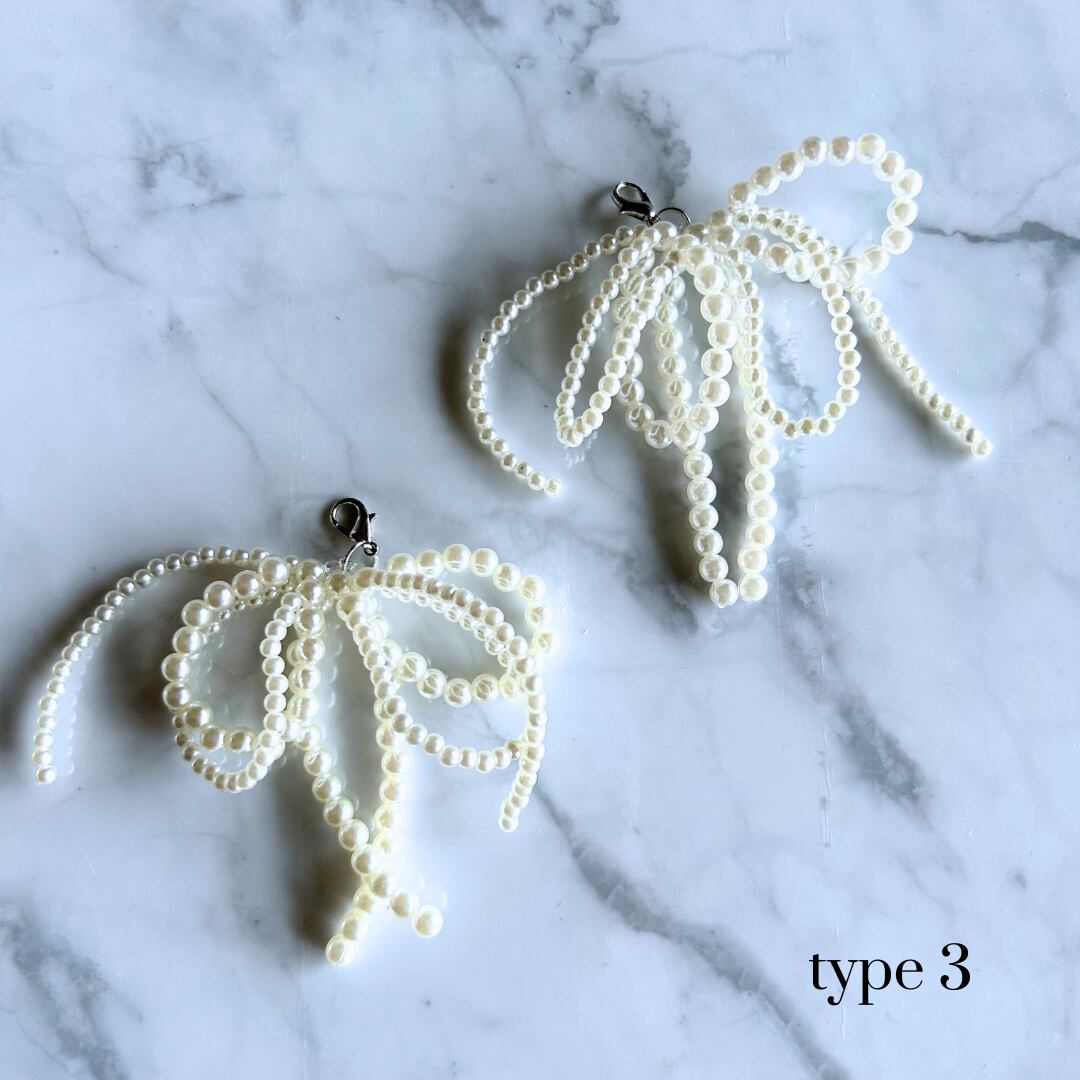 パールで仕立てられたリボンモチーフにミニリボンが付いた大人可愛いデザインや、