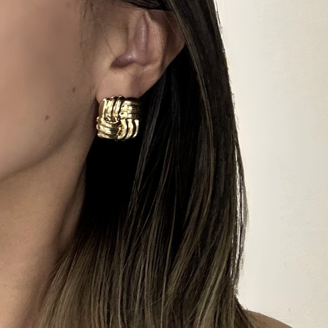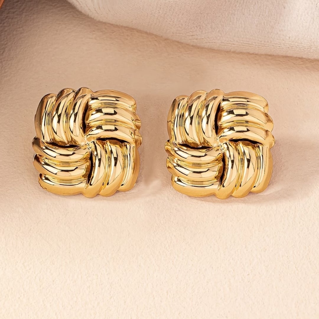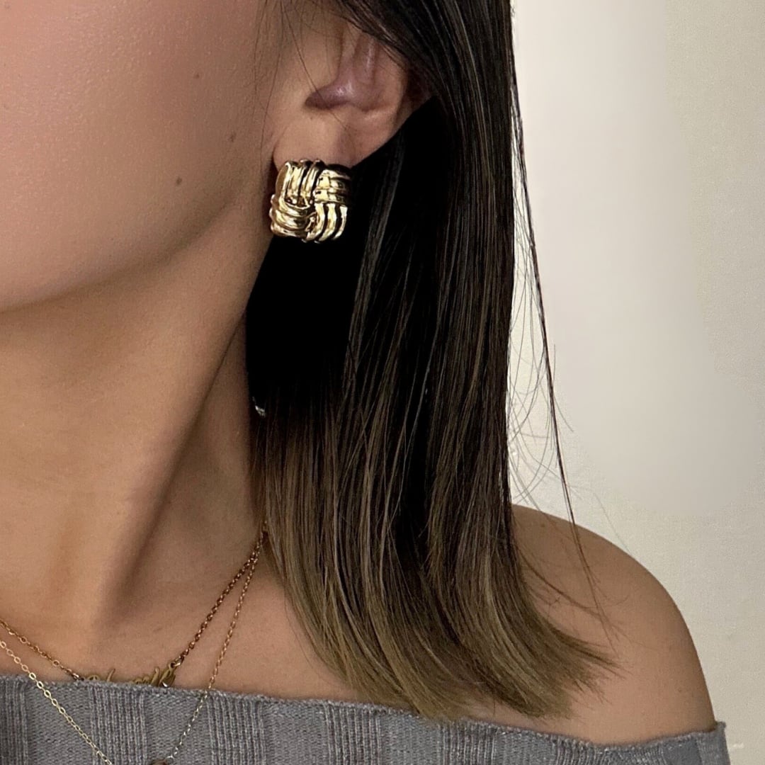 編み込みデザインのエレガントなピアス。